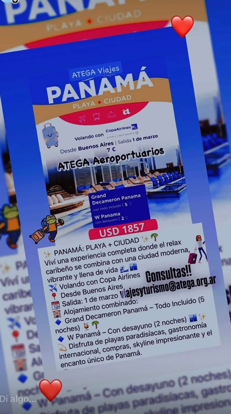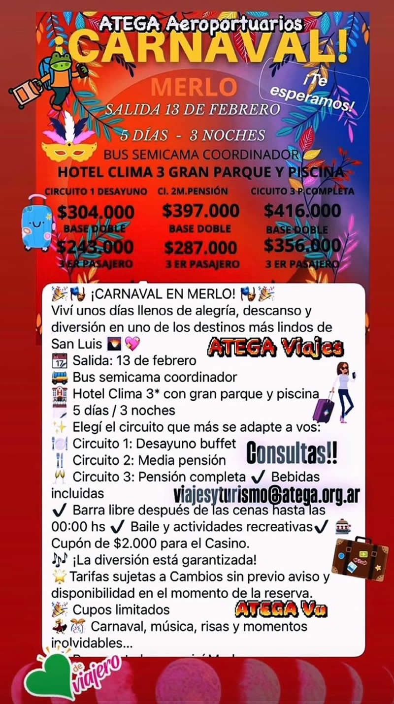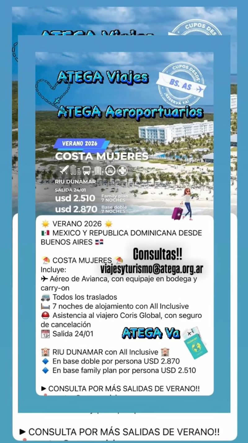 << Promociones vigentes. Descuento para asociados. Consultas a viajesyturismo@atega.org.ar >>